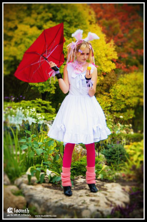 CheshireCat is cute as a button and smart as a whip. This ghostly pale blonde bombshell can be found swathed in shades of violet and wearing an array of bunnyears in our catalogue! Always up for my craziest makeup concepts Cheshire’ has been everything from a classic Lolita to a Vampire’s victim, all in the name of art!