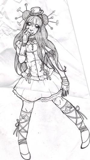 Here’s an example of a drawing Taeden did of some random girl wearing our Blackcherry top and Sable skirt! This would be an acceptable entry, but Tae can’t enter the contest and this piece is therefore disqualified.