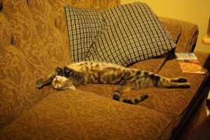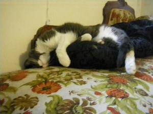 Atticus- Is a terrible flirt, accosting any female who enters my apartment. He’s only 2 years old and quite a small cat even now. He has an extraordinary talent for mischief.