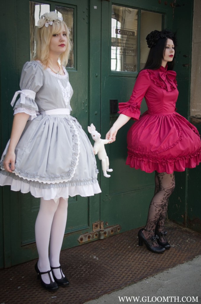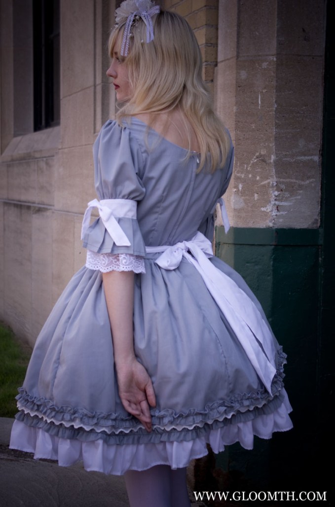 CheshireCat wore it with simple white over the knee stockings and heels for an afternoon stroll over her estate. Filled out with a large petticoat this dress swings beautifully, for a longer length we recommend a smaller (less full) petti’.