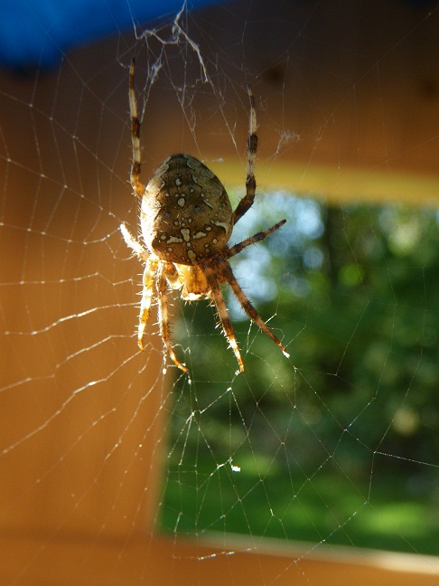 I took some close ups of a very large spider while visiting my family in the countryside recently. This one had decided to move into my niece and nephew’s abandoned playhouse, which amused me.