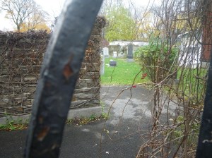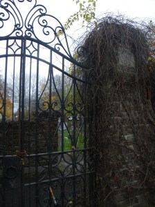 While strolling my neighbourhood recently I came across a little cemetery fenced in among some houses. Unfortunately the gates were locked but it didn’t stop me from taking some photos of the vine encrusted walls and iron gates.