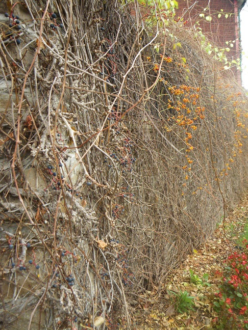 The stone walls must be beautiful when the leaves are in full bloom! I do like the tangled bare vines though.