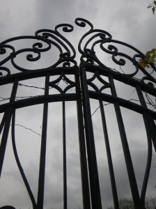 The layers of vines were peppered with withered grapes. And a final shot of the arched gates against the grey November sky.