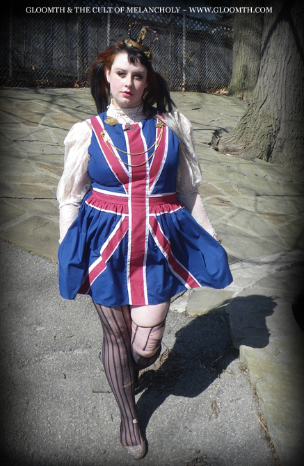 I really do not model, it never really occurred to me to for the website, as I am far happier art directing/styling shoots than being in them. However, we have had quite a few requests to show our clothing on models who are not size “smalls” (I believe all sizes of women are beautiful, but the majority of models who have applied to work with us have been smaller). Since I am definitely not a “small” I decided to swallow my photo anxiety and snap some of my own photos in my Union Jack dress.