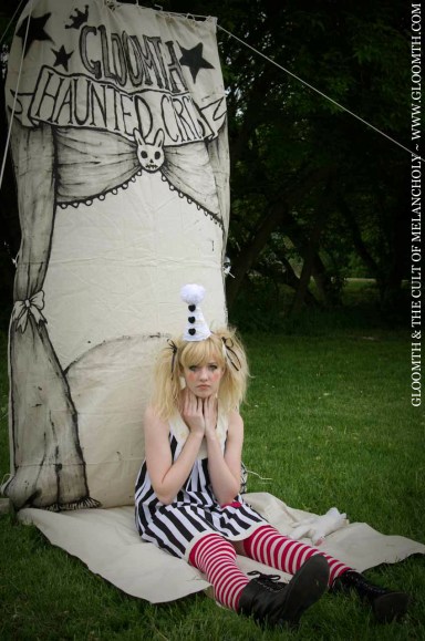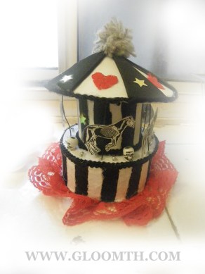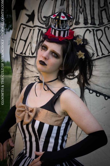 You may have noticed some rather special hats and accessories worn in our recent photoshoot for Gloomth’s Haunted Circus! I custom made tiny carnival and circus inspired head-pieces for a few of the outfits, to add to the overall strange spooky circus feel!