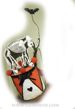 The next little hat featured a tiny skeleton elephant holding a little bat on a string. Originally it was supposed to be a balloon that he was holding, but the bat is much cooler. 😉