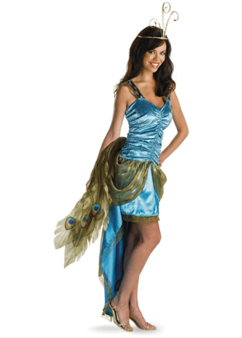 Ah Halloween, time for bad stretch velvet and cheap satin. I am not sure I understand what this one is supposed to be. She looks like moth with some sort of peacock tumour? Mothcock? Peamoth? (*smirk*)