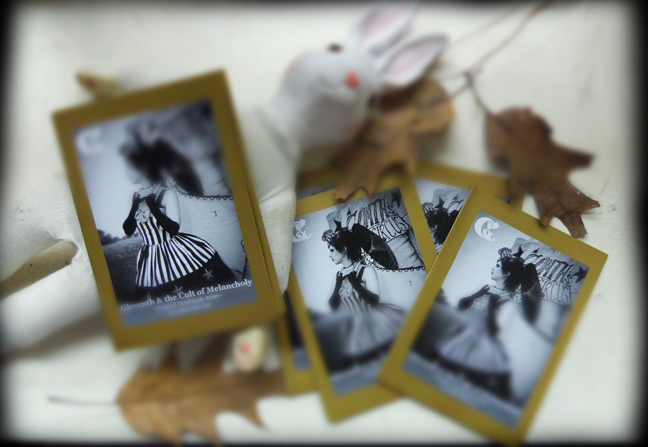 We now have hand written note cards accompanying every out-going order! They’re metallic gold and everything! They feature one of my favourite photos from our Haunted Circus line.