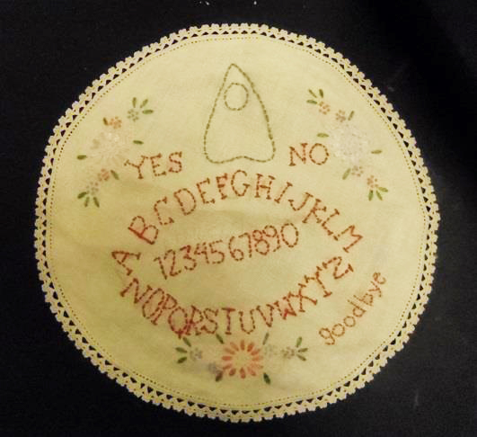 I have been obsessed with hand embroidery again. I’m not very good at it but I kind of like my wonky freehand results! I made this Ouija Board doily/sampler for a friend. It is the perfect blend of my love of vintage doilies and my awkward embroidery. What do you think?