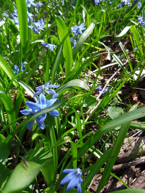 A blanket of blue squill makes this no-man’s-land near my apartment building seem beautiful! Hundreds of tiny blue flowers fill the ground. Missed entirely by people passing on the busy sidewalk nearby. They’re so vibrant and unexpected, hidden in amongst city streets.