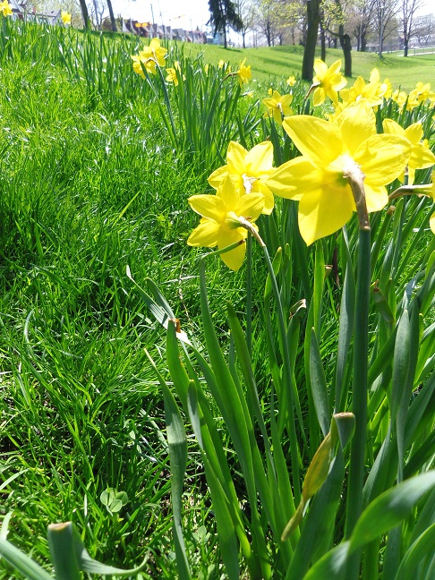 These daffodils populate a hill in a park near my area. They don’t seem intentionally planted, no tilled soil or garden markings anywhere near them. Every spring I watch eagerly for their arrival in the park.