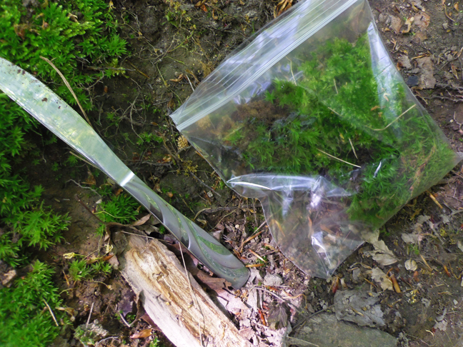 You can keep the moss in the fridge inside of the sealed lunch baggies for a few days if need be (but it’s better to plant it the same day).