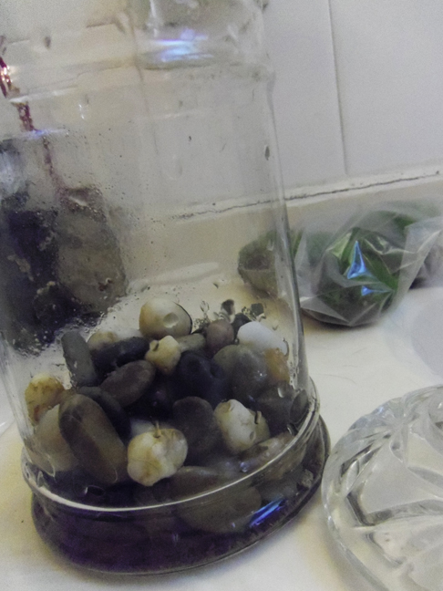 -A about a cup of small stones. Mine are leftover from decorating my fish tank. You can find smooth stones in most dollar shops, or collect your own (just be sure to clean them thoroughly prior to use).