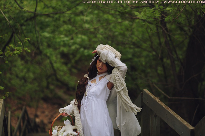 Brave Lily came alive in mori girl inspired fashion! Dancing and twirling despite the grumpy weather! Swathed in vintage sweaters and scarves, with our “Shalott” nightdress worn over an antique cotton slip of my great grandmother’s!