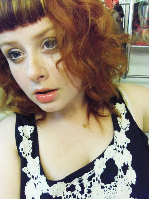 I was excited about my big hair and newly altered dress but neither photographed very well. I assure you my drunk-face in this photo is purely coincidental…. 😉 I have been going through my closet and either editing things I never wear anymore or getting rid of them. This dress was one I had made for one of my Halloween costumes (it had a big tooth on it) and I painted over the tooth and then added a vintage lace applique! It’s much better now and perfect for hot summer days.