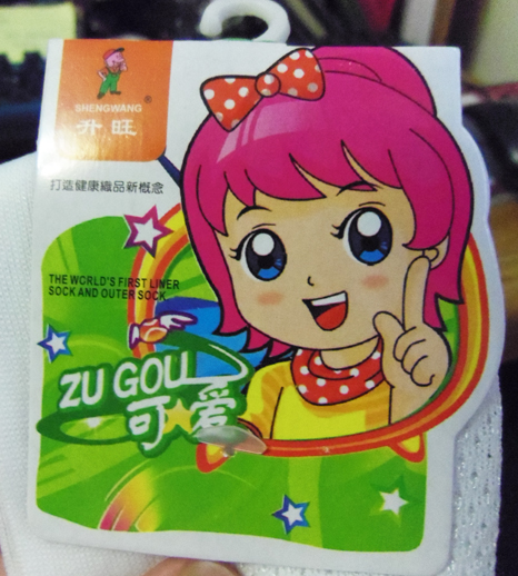 I ordered frilly socks on ebay and the only good thing about them was the weird pink haired anime girl on the label. “World’s first liner sock and outer sock”. More like world’s crappiest fall-apart-upon-removing-from-package sock. Suuuuuch sock disappointment. 😦
