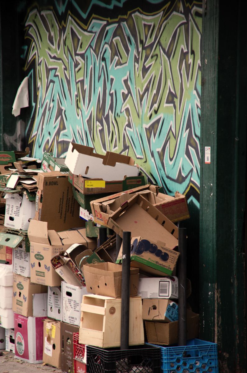 Kensington Market is a great place to spot graffiti in the city! It decorates nearly every surfaces and ranges from tattered stickers and scrawls to elaborate full color displays.