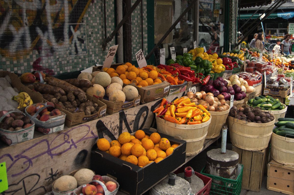There are numerous shops displaying arrays of produce like this. We thought the contrast of the beautiful vegetables and fruit against the graffiti covered background was really lovely. The meeting of urban life and rural agriculture, in a way.