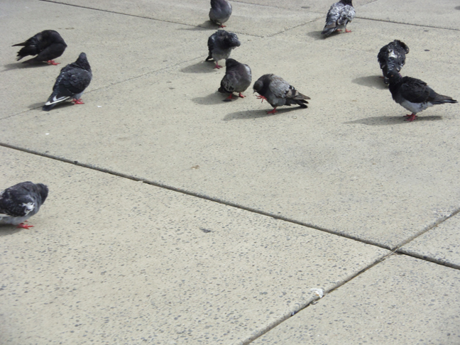These raggedy pigeons didn’t care about the artwork. Unimpressed pigeons.