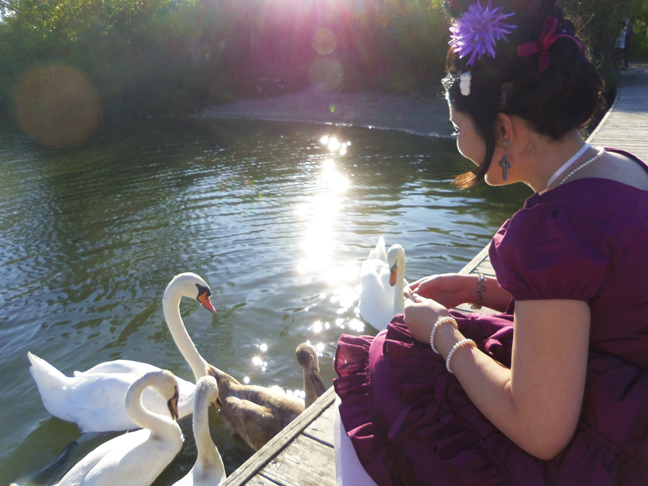 Swan creeping on Nikki’s posing. “Got any bread?”