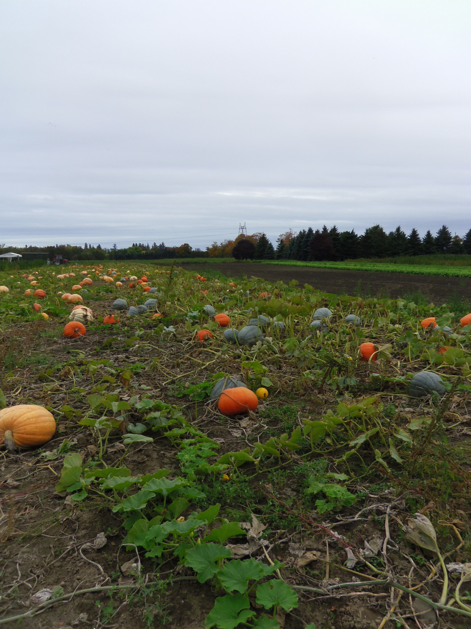 The giant pumpkins were all sorts of colors. White, creamy, pale orange, dark orange, green, and almost black. Slumped in the field among the tangled vines.