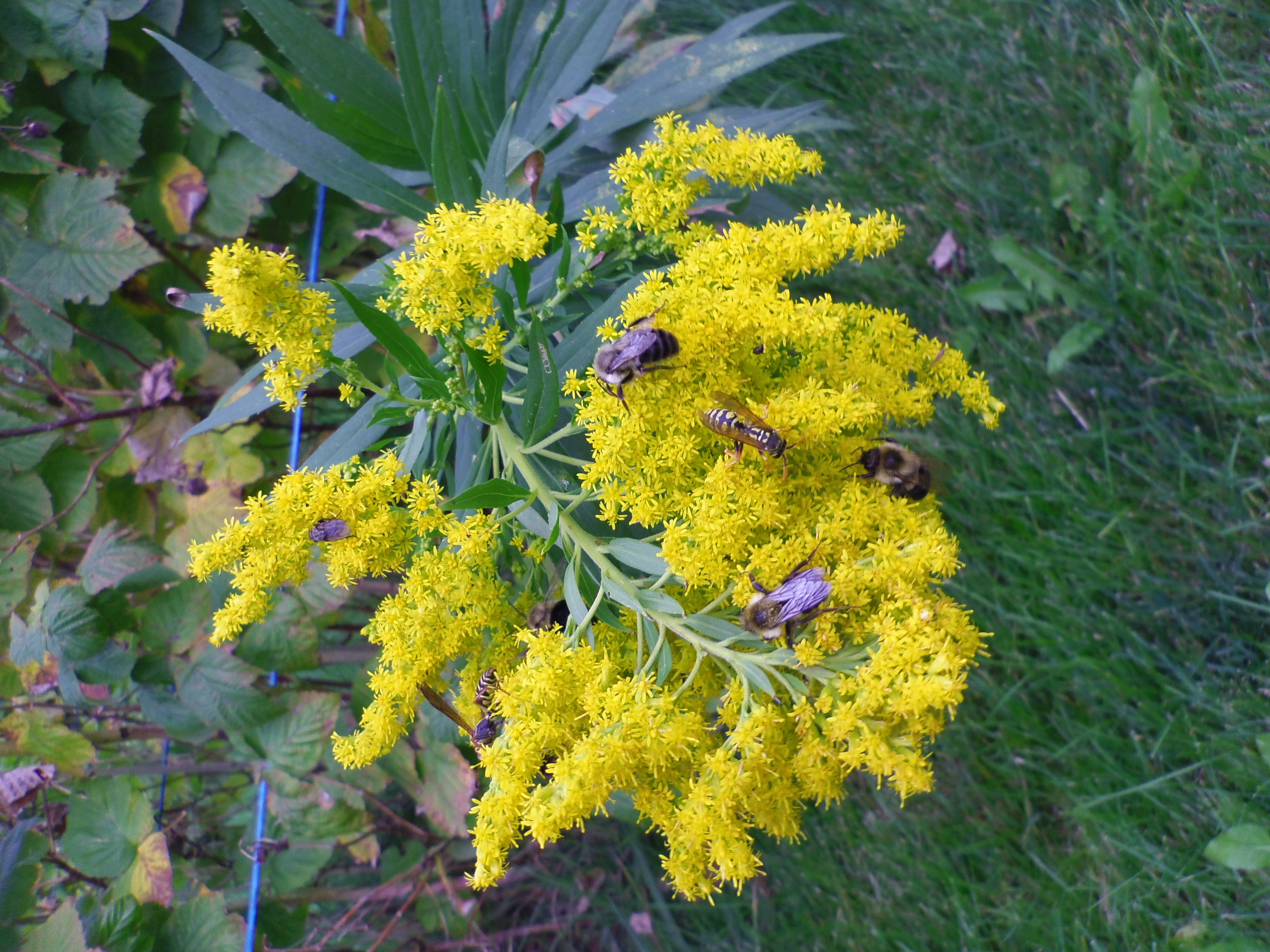 Bees and wasps crowding this goldenrod blossom. BEES!