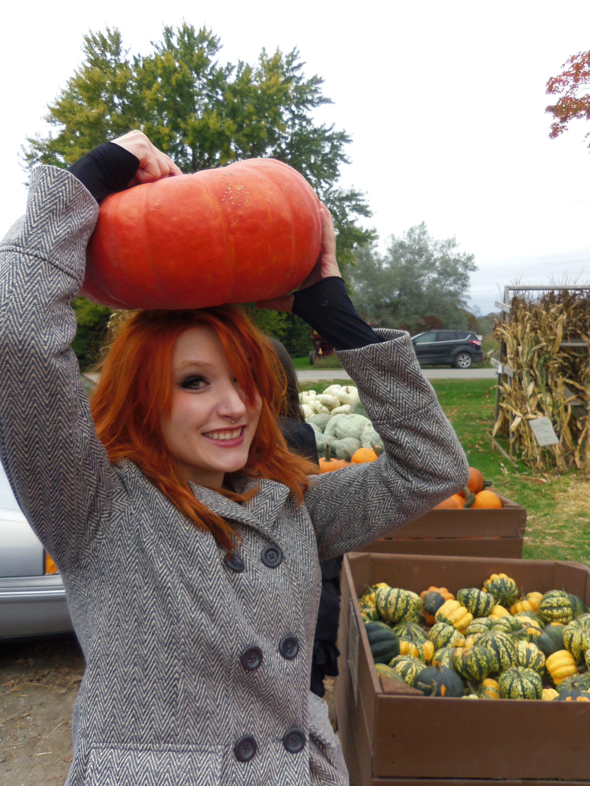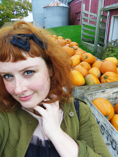 Me posing with giant boxes full of big pumpkins on the farm! It was such a nice break from the city noise and air for me, exactly what I needed really.