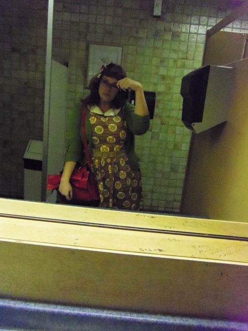 I had gotten new glasses the day before! Very excited about them as they are my first pair of not-black frames since I started wearing glasses 15 years ago! Truck stop bathroom selfies! 😛