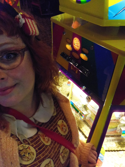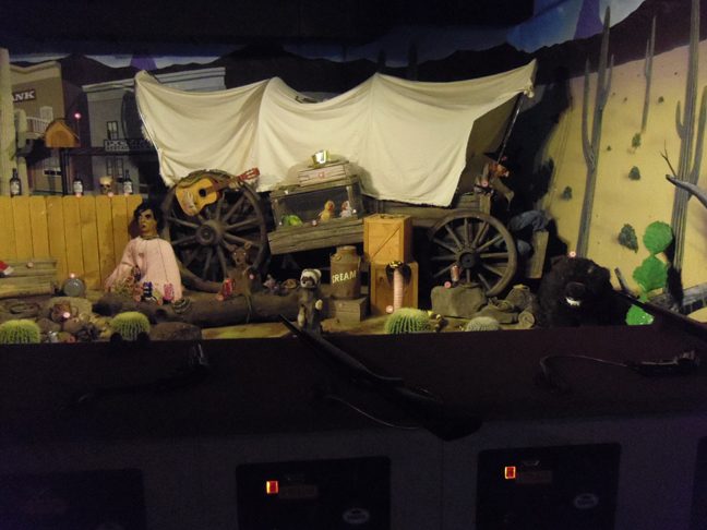 Then we headed to an arcade intended for children which was kind of hilarious. They had this unsettling shooting range with a zombie wearing a pink shawl, rubber snakes, cacti, and weird disembodied hands…….