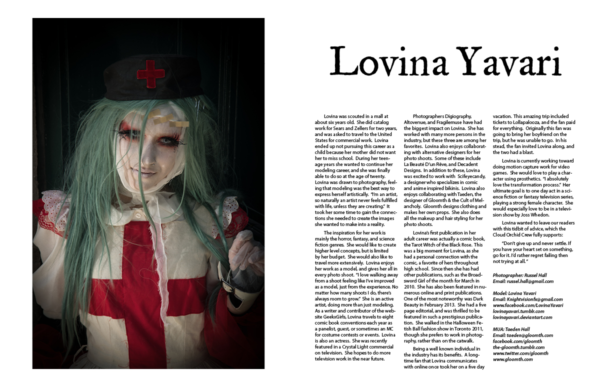 Select images from our “Operation” photoshoot were recently featured in Issue 5 of Cloud Orchid Magazine alongside an interview with model Lovina/Vamp! Photos by Russel Hall.