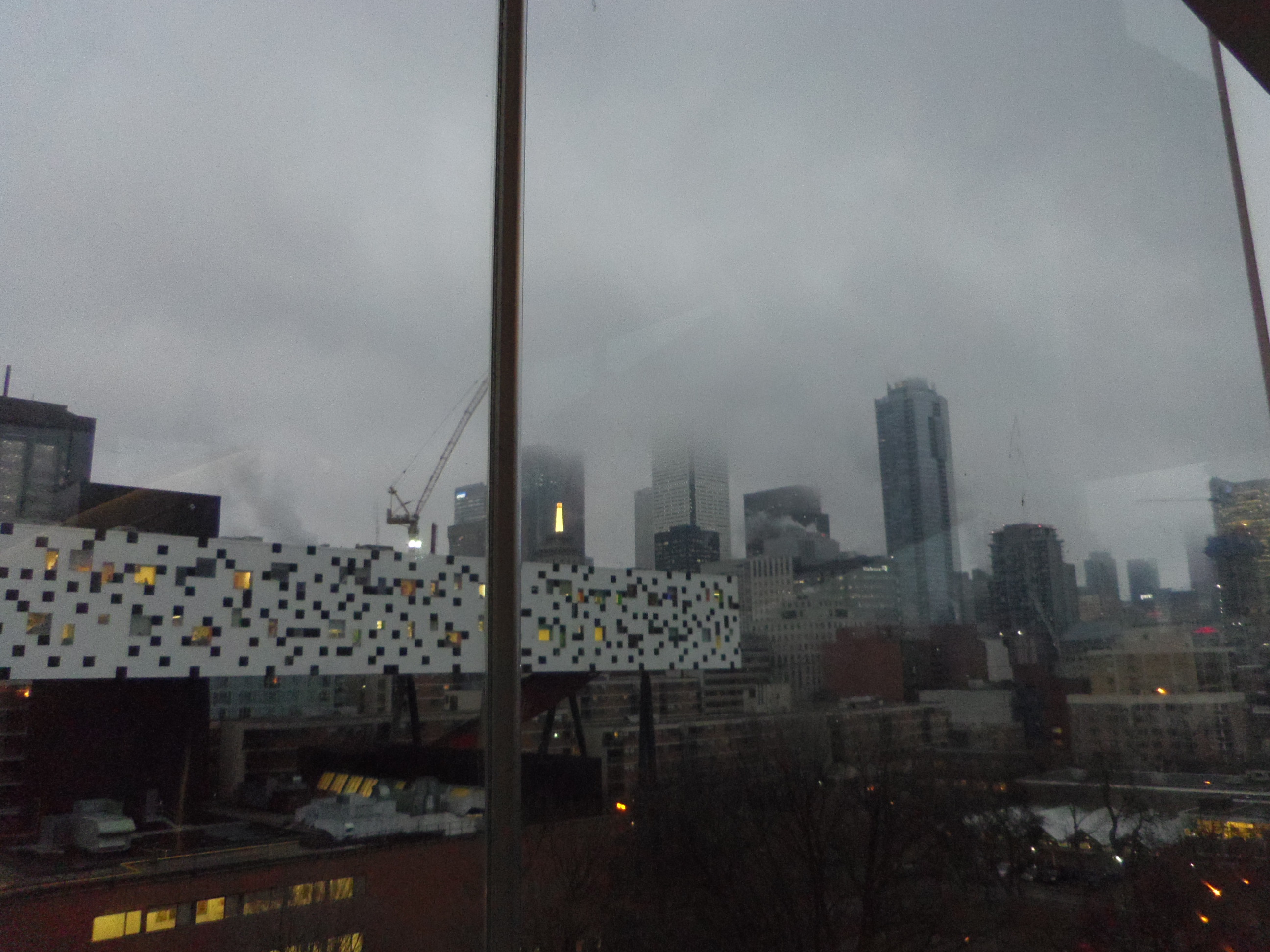 The foggy/rainy view from the art gallery. The spotted building is actually the university I attended (and probably one of the crown jewels of Toronto’s exceedingly bad architectural resume).