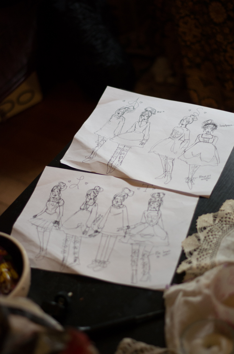 Concept sketches! I always try to quickly sketch out the coordinates for each shoot and which model will be wearing what. It’s especially helpful at large scale shoots to have something to go back to make sure I don’t forget details.