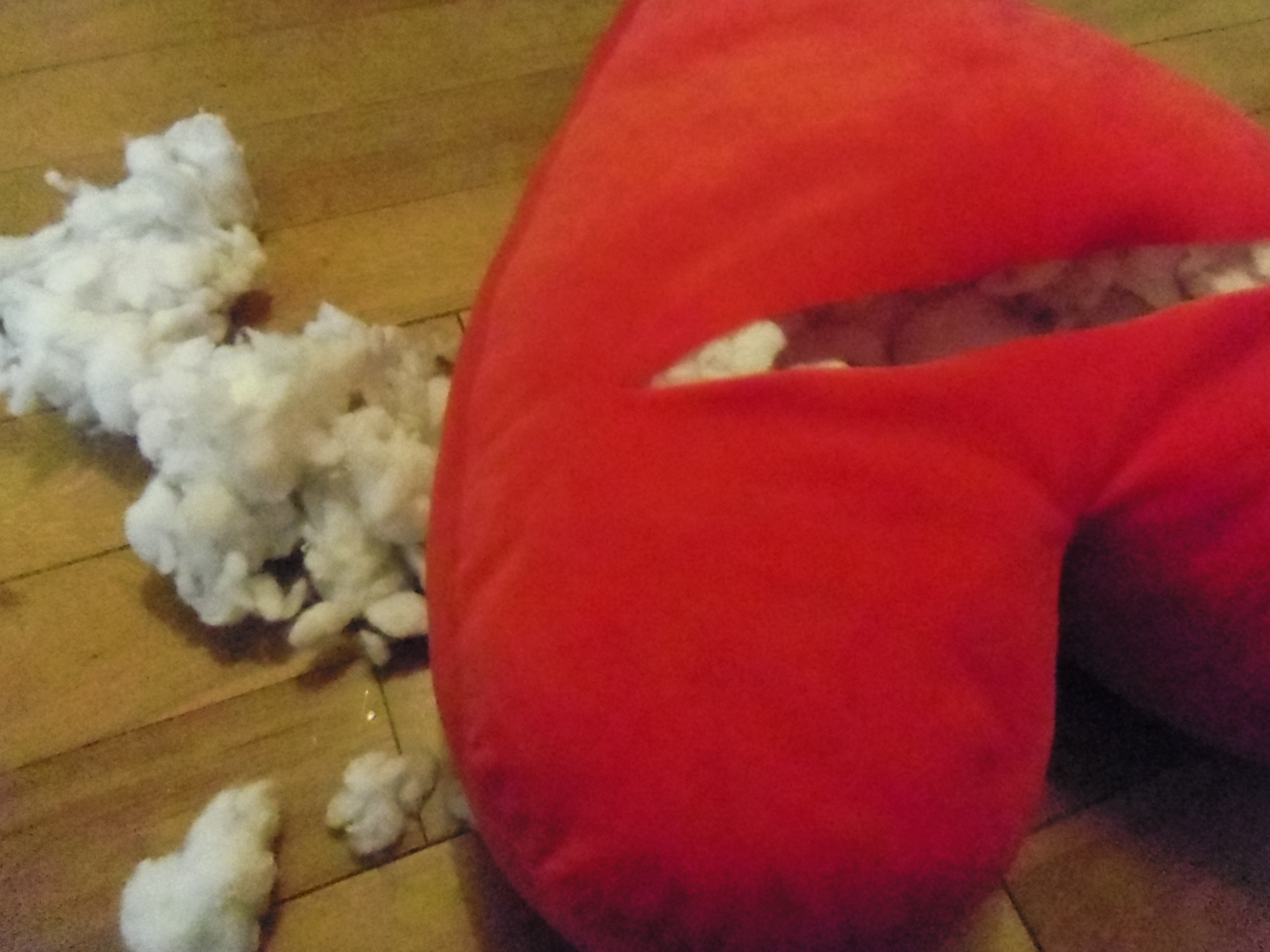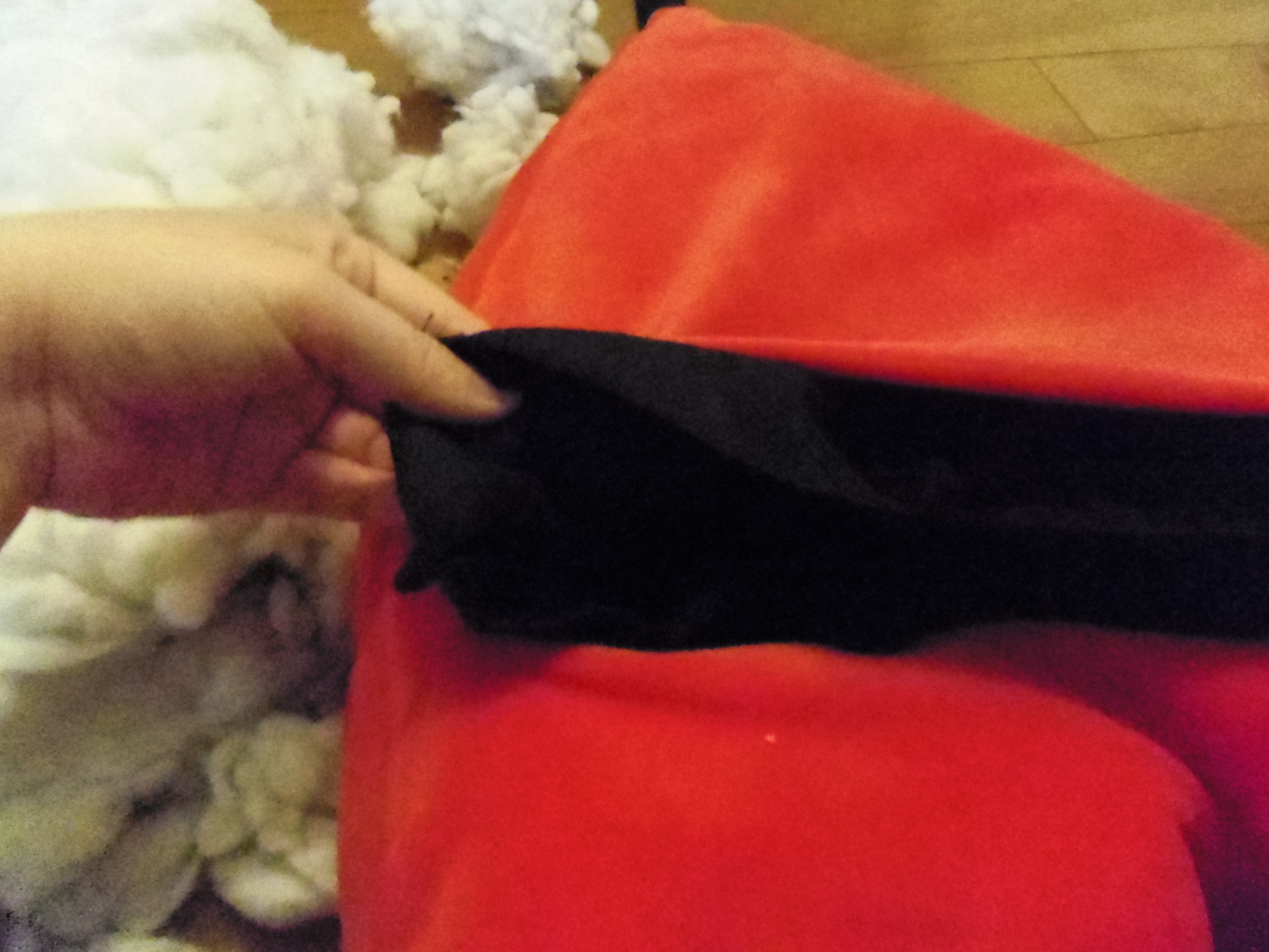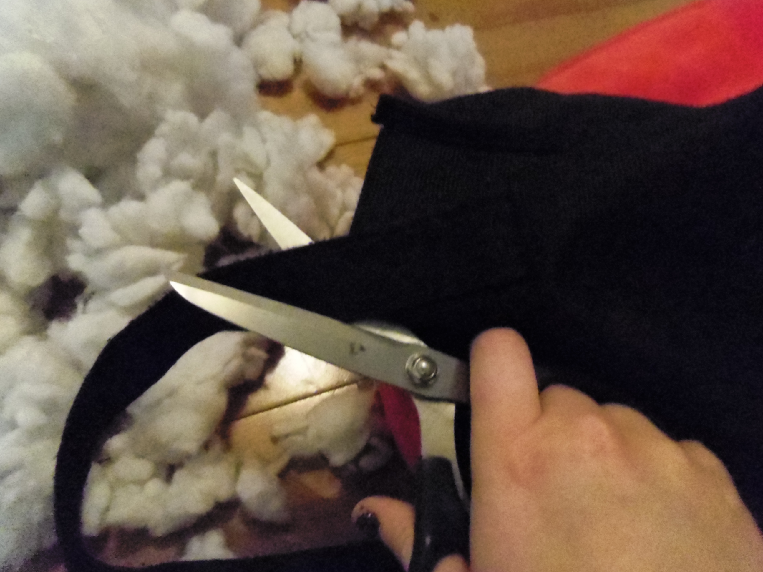 Gut it! Remove some of the stuffing from the pillow/toy, you want to keep the stuffing that fills out it’s shape in place. If the toy has limbs leave those full, leave head shapes full- basically I just removed a pile from the middle of the heart so it would keep it’s heart shape and not deflate.