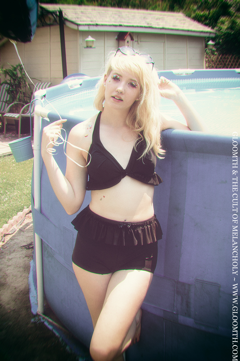 They sit high on the waist, covering the navel on most heights or sitting just below it. All of the elastic and fabric used in these bikini bottoms is chlorine safe and will withstand many summers of wear. These bottoms feature a wide ruffle at the waist, which is very flattering as it makes your waist seem smaller. Finished with a black satin bow!