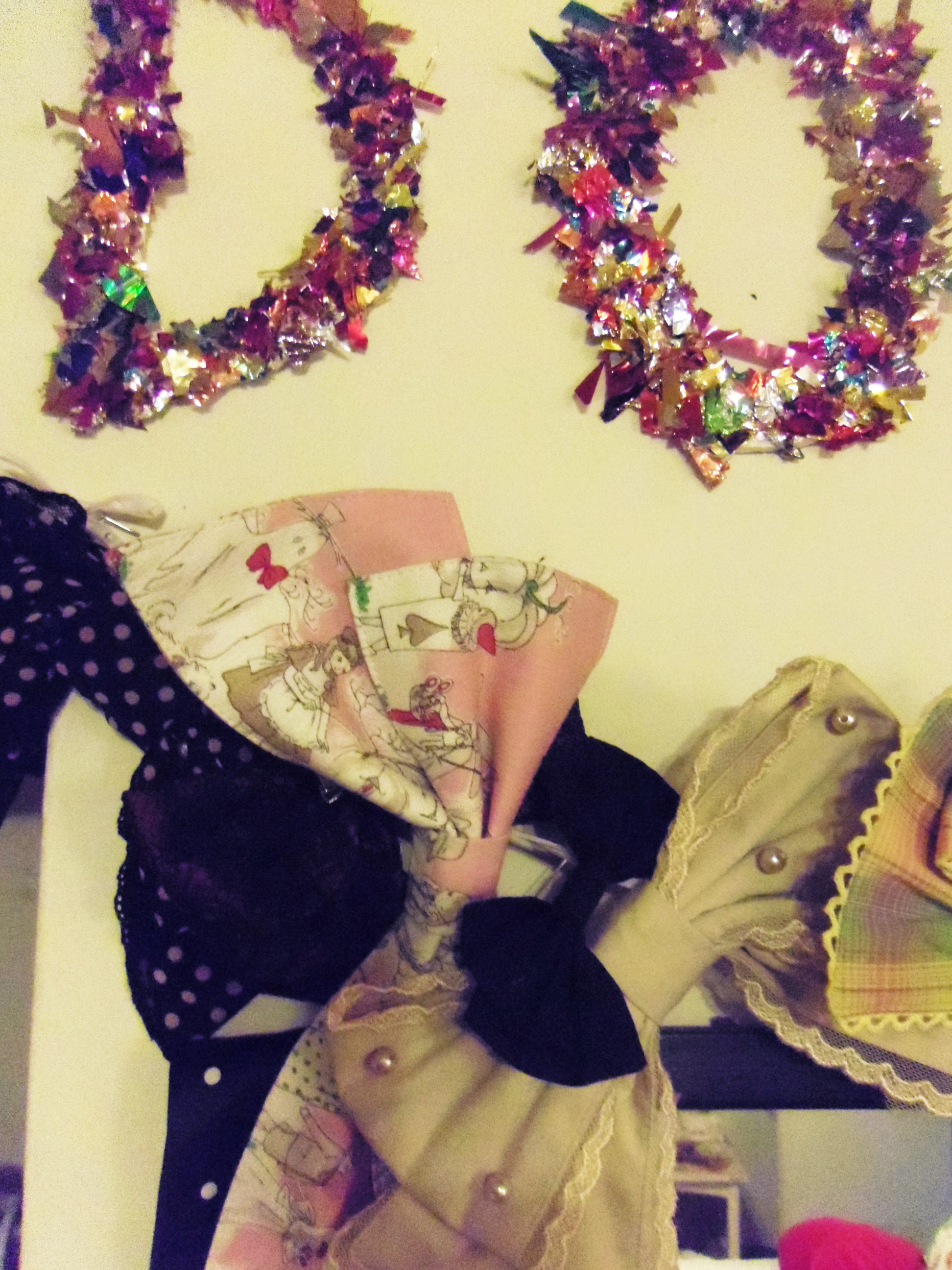 I chose the word “DOLL” as it had only 4 letters and would comfortably fill the space above where I hang all my bows. This project would be great for creating initials for your door, a Halloween garland, a birthday greeting, or any cuss word you need to have stuck on your wall to bother people with.