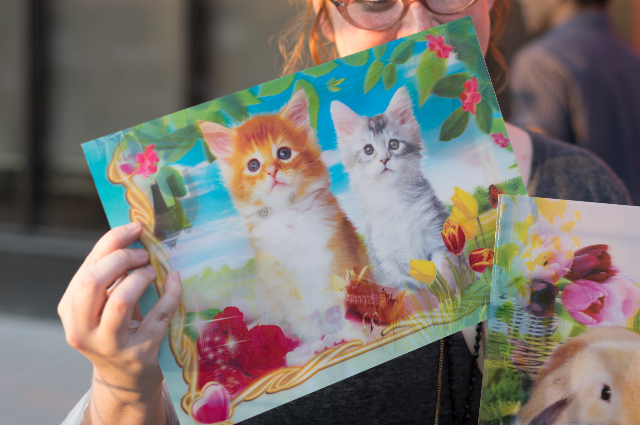While exploring Chinatown I was summoned by the $1.50 “3D” kittens and bunnies posters! Of course the kittens are now hanging on my fridge where they will be viewed by all guests. Beautiful holographic kittens (and wine glasses to their left).