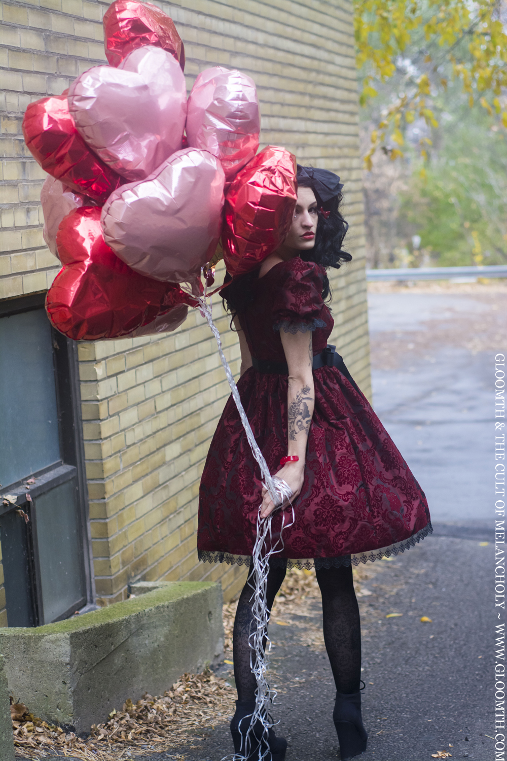 Delicious in cherry red taffeta patterned with a flocked velvet damask throughout! It will shimmer and glow at your holiday event. We are only making FOUR total of these dresses, so there are 3 more available (as well as the size small used in the photoshoot briefly)- so you can be sure you won’t run into a copy of this dress at your staff party.