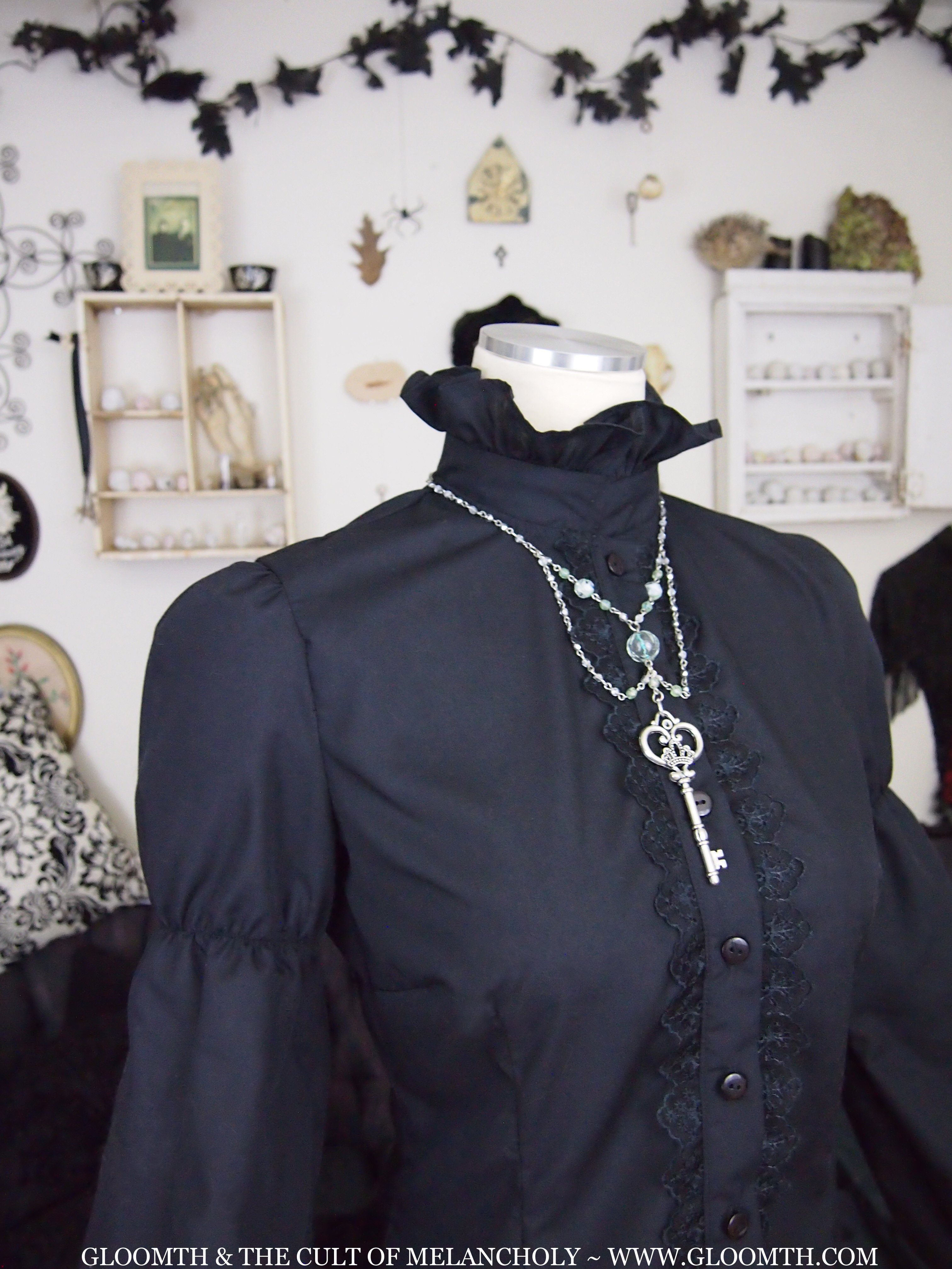 Gloomth carries a lovely selection of handmade Gothic and Victorian inspired necklaces by our friend and model “That Green Haired Chick“! Her work features crystal, silver, preserved flowers, and all sorts of detail. All of it is made in Toronto and we have it in stock ready to ship! 🙂