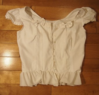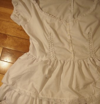 Eulalie Bodice Top, WHITE. Medium, Bust 36-38″, Waist 28-30″. $20 White cotton, discontinued top worn for a couple of shoots, has a couple tiny makeup smudges that will come out in the wash (will try and have it cleaned properly before sending).