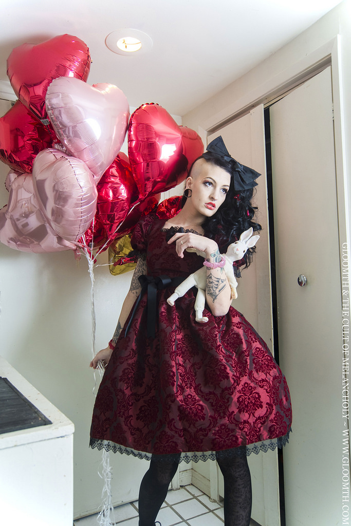 Fill out the anonymous poll below and let us know which you’d like to see back in our catalogue first! We have 2 options for colors for the “Damask” dress, one would be a red taffeta with black flocked damask pattern and the other grey taffeta with the black flocked damask.