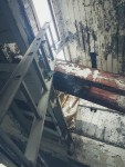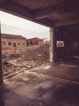 The first floor was gutted and left open, and probably the most safe of the the entire structure. Some of the rubble had been heaped up under plastic tarps as though workers had just given up and moved on. The higher floors were flooded in places and had been vandalized, the very top floor was especially eerie and seemed more unsafe so we didn’t really explore it as thoroughly as the others.