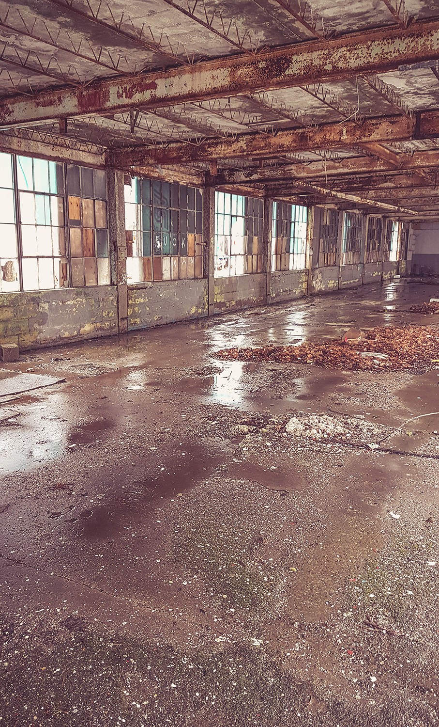This was a huge three story factory building, full of shattered glass and peeling lead paint. I’ve decided not to share the location or name of the property because I really don’t want to be blamed if someone goes there and gets hurt (and it’s not really “legal” to explore spots like this, sorry mom!). Risking our well-being is one thing though, and I took a ton of photos on my phone to share because the space was really incredible and fascinating! I didn’t bring my either of real cameras with me so please bear with the semi-ok phone quality.