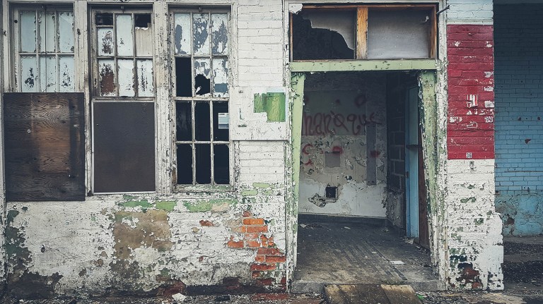 I loved this rotting office area, the layers of paint peeking out through the decay and the paneled old fashioned windows. We also found a very old solid metal safe tucked in a weird corner cupboard on a lower floor, it was pitch black in that space so we had to use our phones to try and illuminate it. Inside of the safe was a pile of burnt fabric and papers, deliriously.