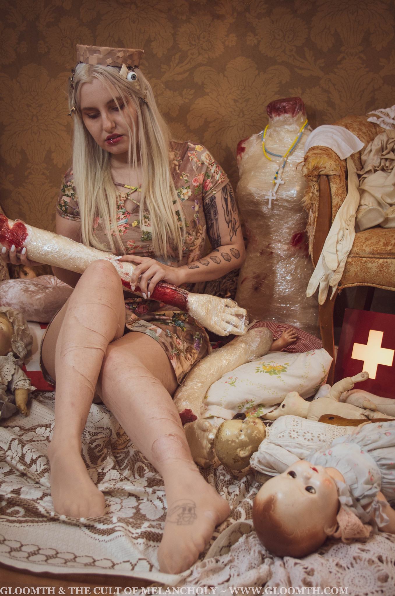 creepy girl with dolls