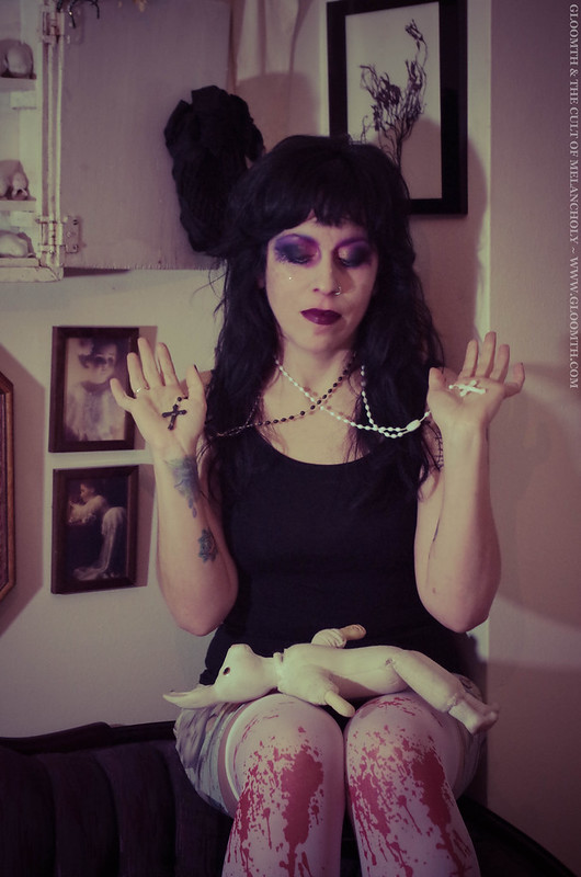 gothic girl holding two rosaries
