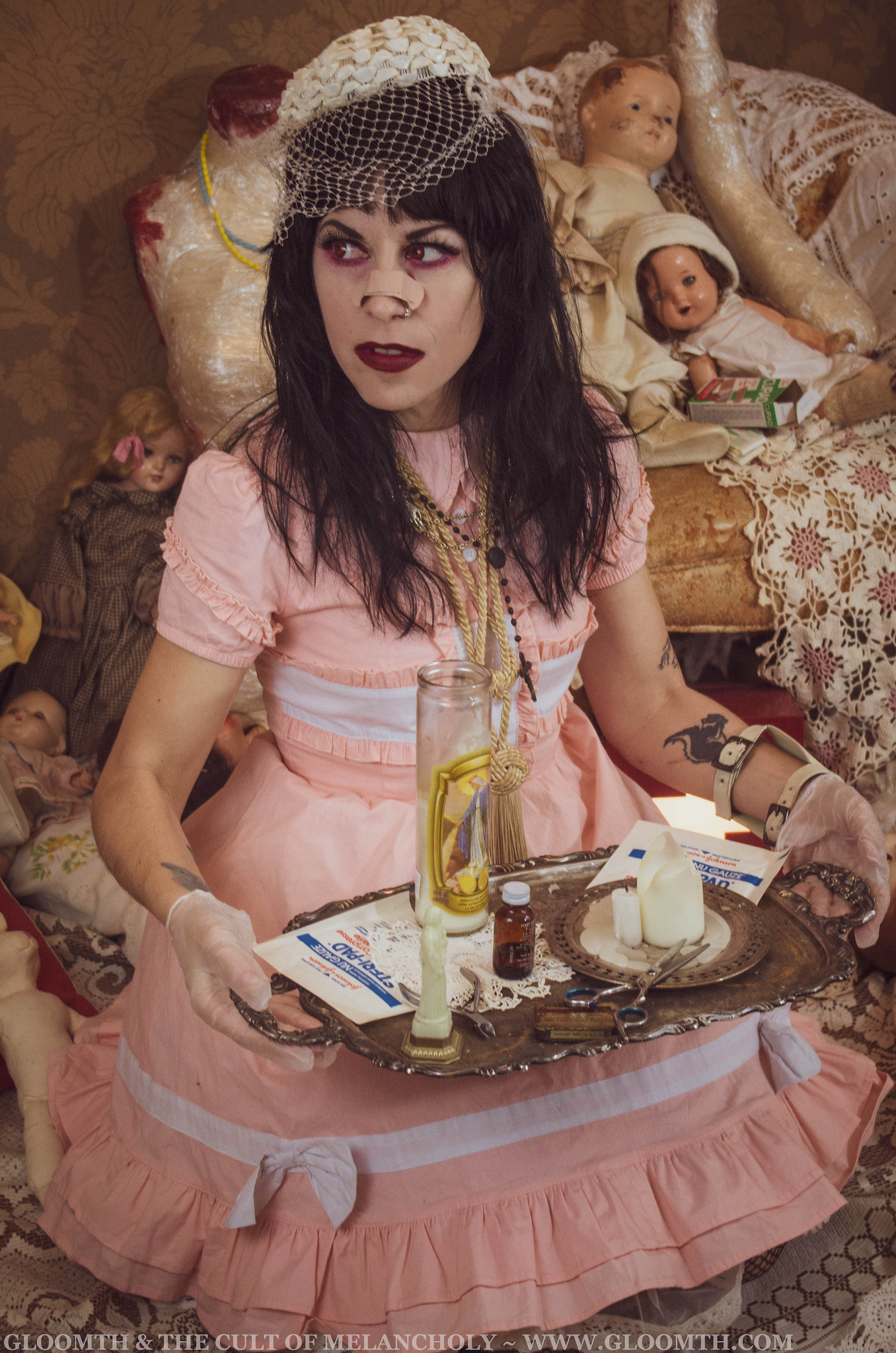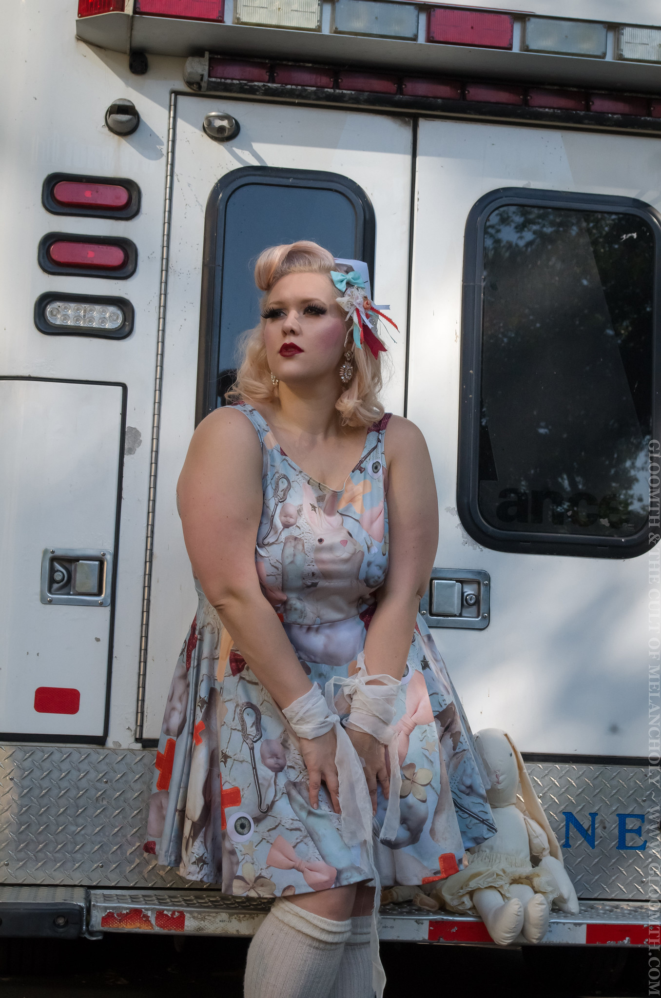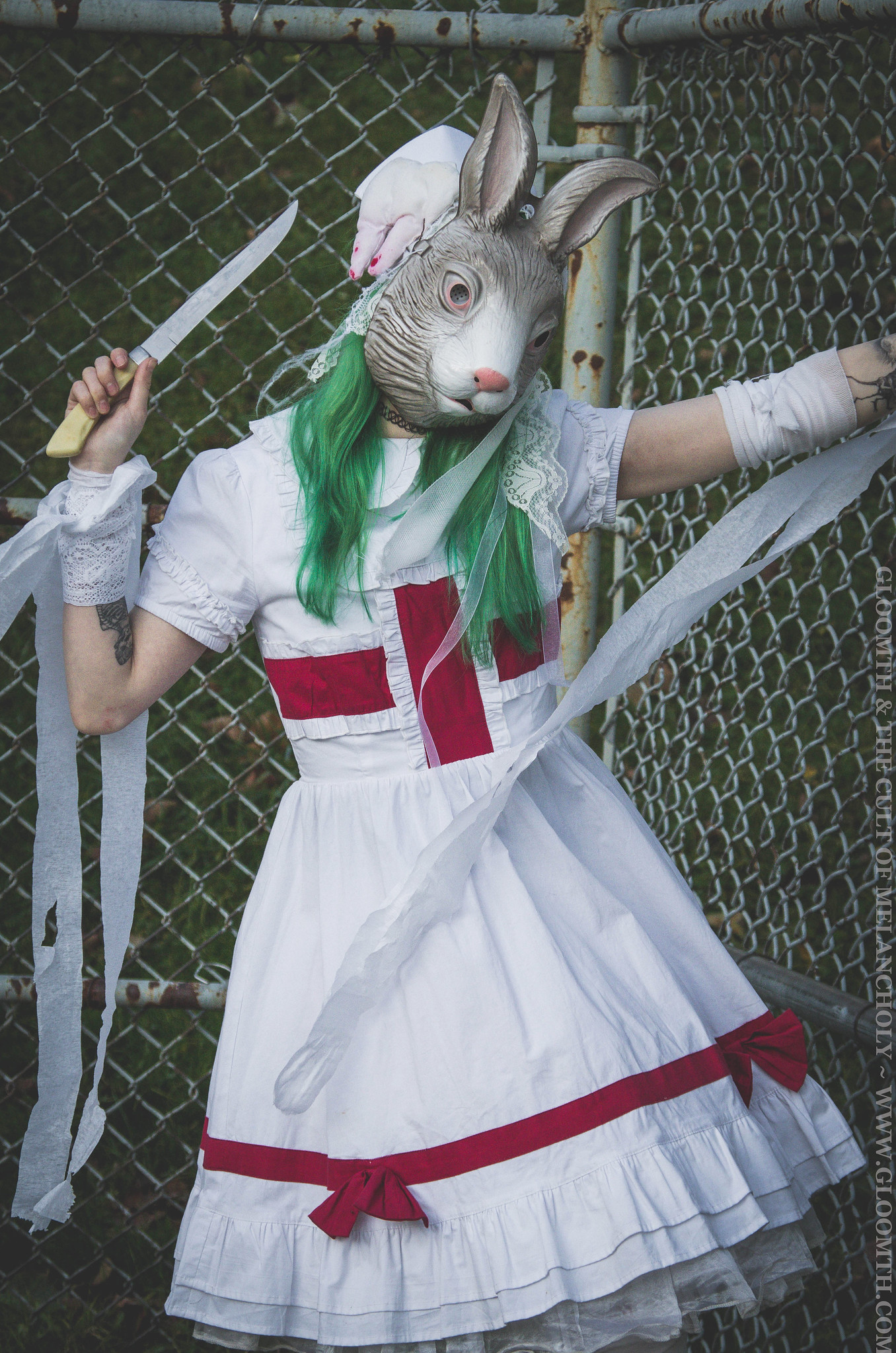 Our Nurse dresses make a great base for any of these looks but if you’re finding thrift store items or pulling from your own wardrobe to create this costume look for sheer layers, tattered items, fishnets, and lace. You can add red medical crosses out of felt or any fabric you have to pin on and add some more detail to your look!