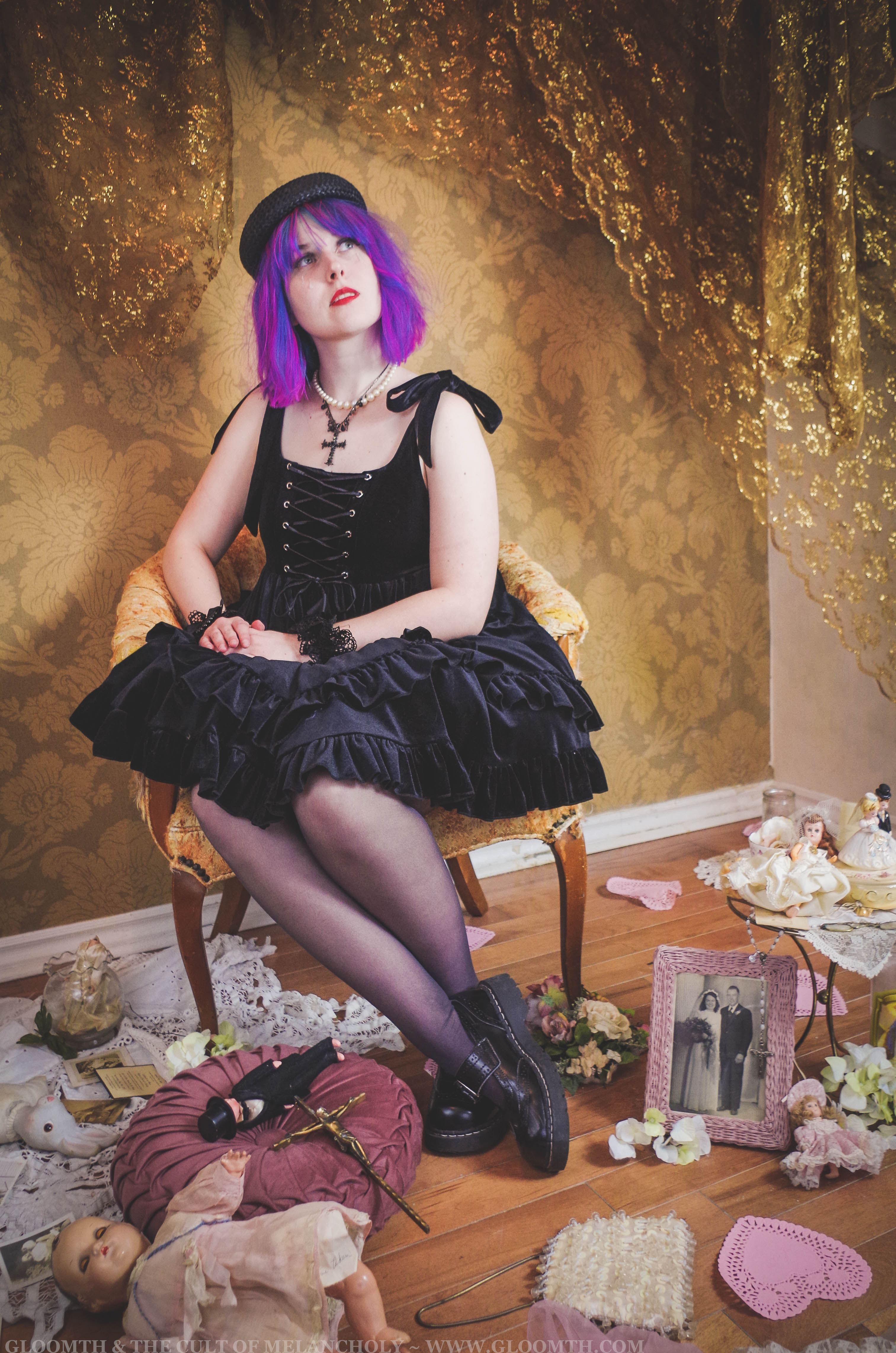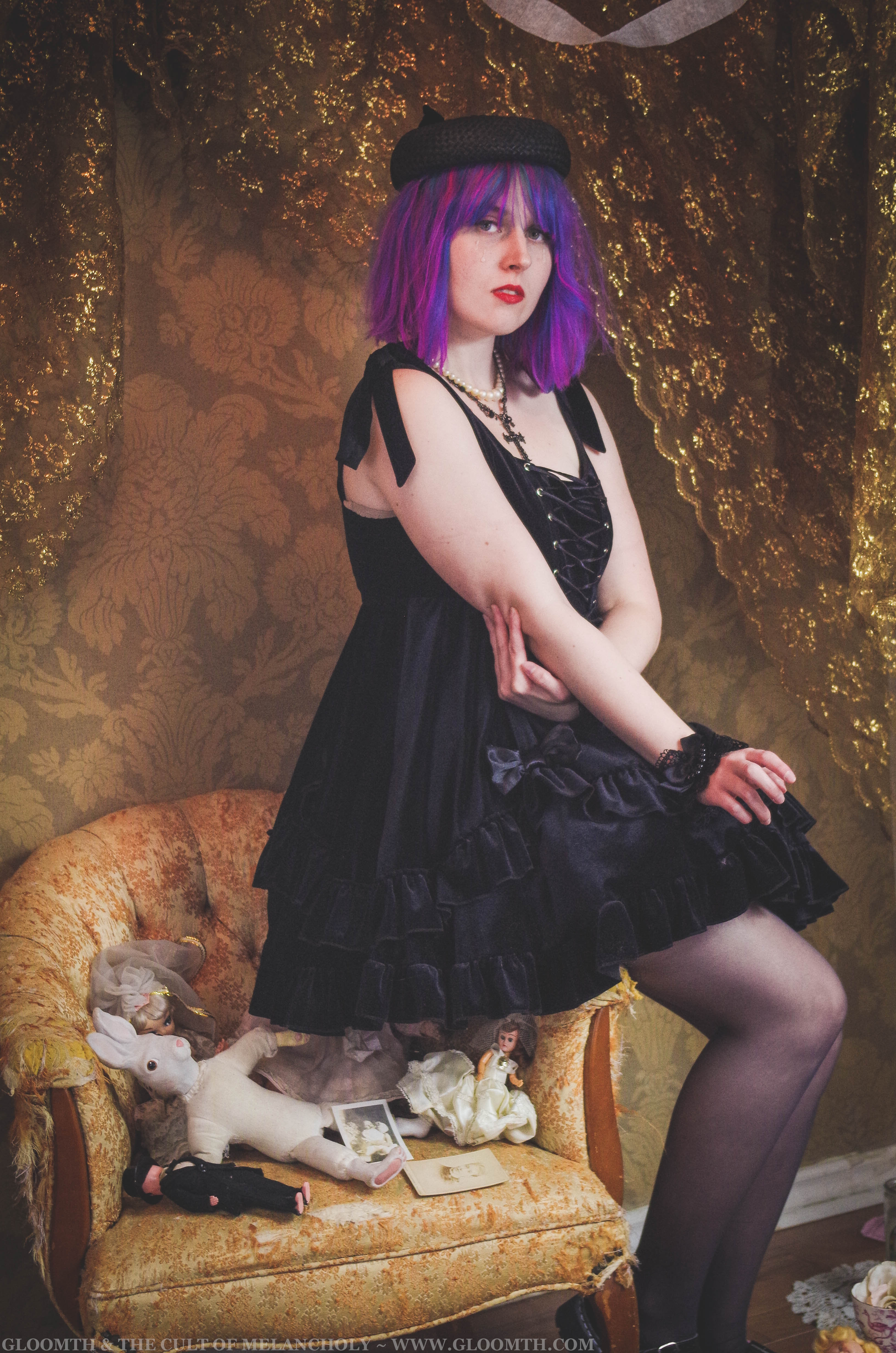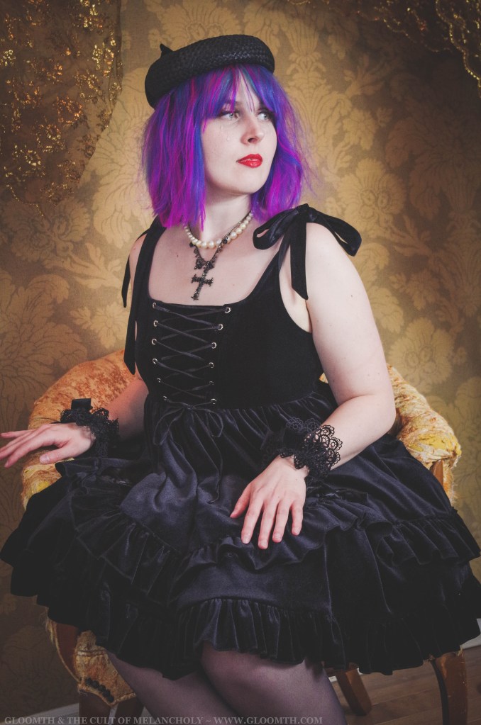 Today it’s our “Malice” dress! A lush velvet tea party dress perfect for layering over your favorite blouse or wear it solo as a decadent party look.