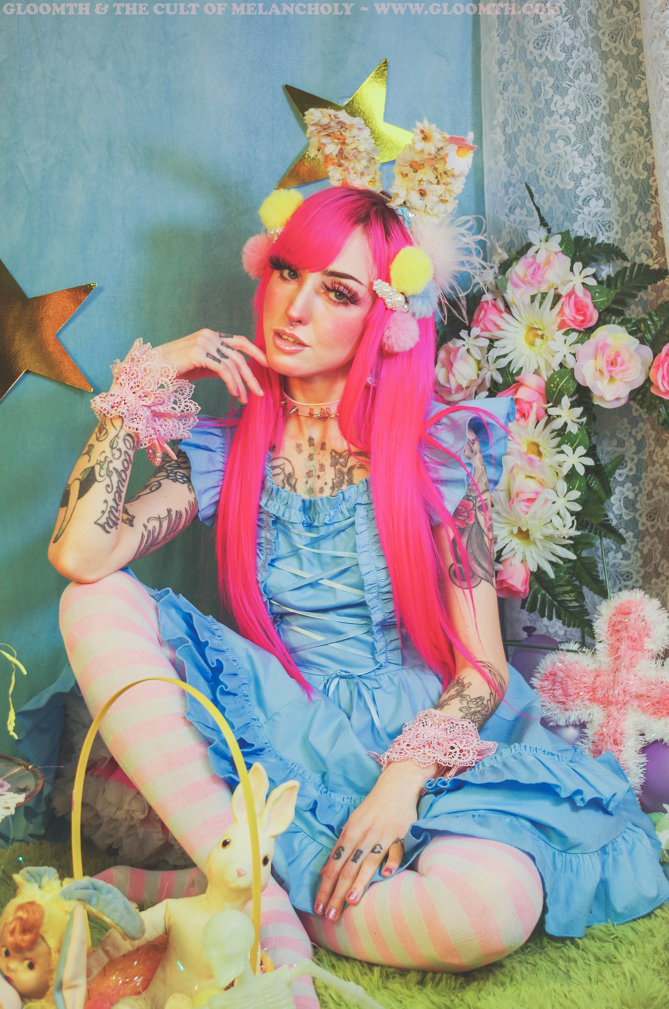 This past weekend was Easter, which admittedly is not my favorite holiday. I like the aesthetic of it- all the pastels, flowers, and baby animals (and the candy)- but I’m not Christian and feel no connection to the holiday (and as a childfree person the Pagan fertility vibe isn’t my scene). Despite my Easter-weirdness I finally managed to do a proper Easter themed shoot just before the weekend!!!! Of course I added my own creepy kawaii twist to the traditional Easter elements.