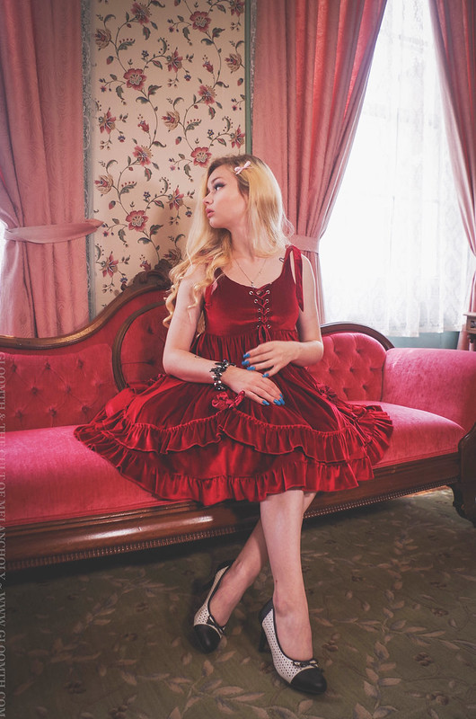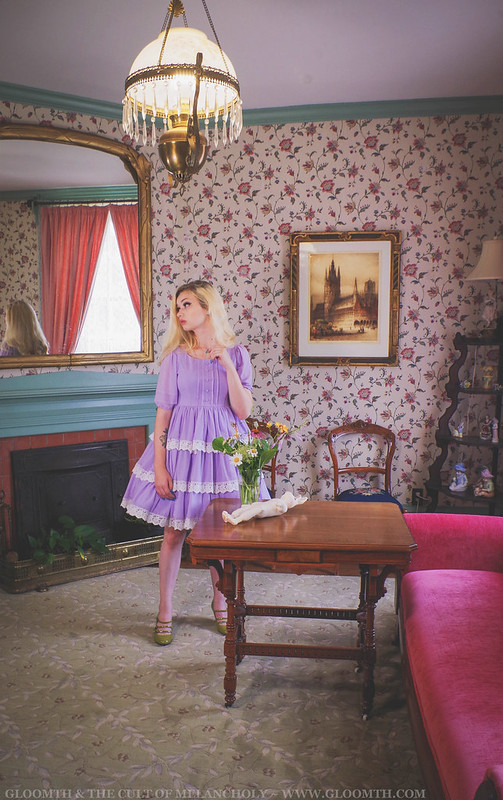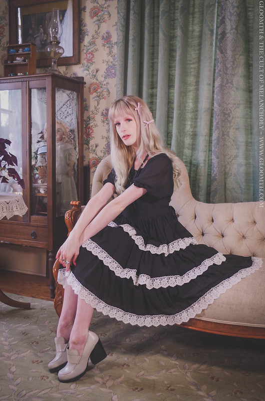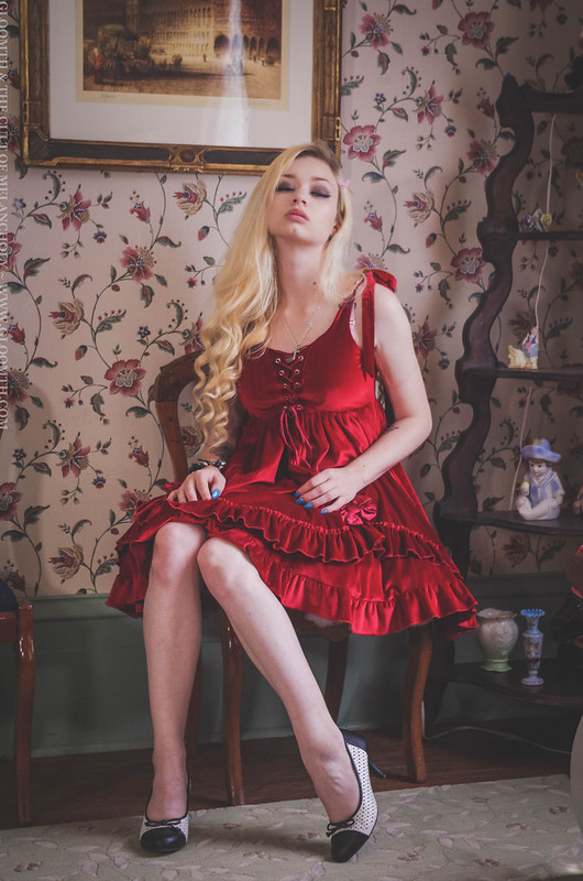 The vibe for this shoot is sort of a retro coquette aesthetic, using some of our favorite Gloomth designs as well as a couple new styles we’ll have for fall 2022. The models Vile Gloom and Daisy Locket were absolutely stunning in everything they wore (of course) and really made this concept come to life.